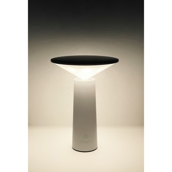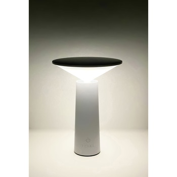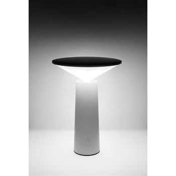 傘型の特徴的なデザインが印象的なインテリアライトです。操作が簡単なタッチセンサー式で、点灯と3種類のライトカラー切替が可能です。長押しをすることでお好みの明るさへ無段階調光ができます。USB充電式でお好みの場所で使用可能、一度の充電で約2.5~5時間使用可能です。