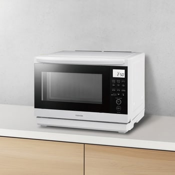 大皿料理やコンビニのお弁当などもスムーズに出し入れできる間口39.7cmの広々ワイド&フラットな庫内を持ち、手入れが簡単な角皿式デザインを採用したスチームオーブンレンジです。