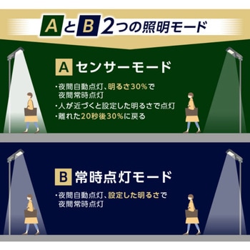 ソーラー防犯灯 (サニーソライト)は太陽光で5~7時間充電し、人感センサーを利用したAUTOモードで約20時間の点灯が可能。20VA防犯灯と同等クラスの明るさです。電気代0円、Co2排出ゼロ。自然エネルギーを利用した環境に優しいECO照明です。検知エリアは、2~6m。車1台分を完全カバー出来ます。自然エネルギーを活用した電源に頼らない独立した防災照明。もしもの時も安心の明かりで安全性を高めるのに役立ちます。