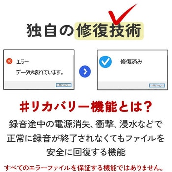 録音途中の電源消失、衝撃、浸水などで正常に録音が終了されなくてもファイルを安全に回復する機能