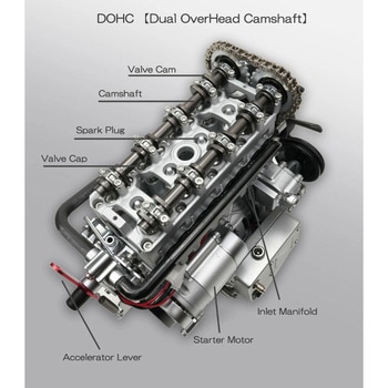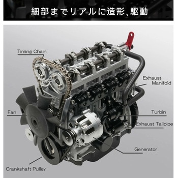 実際のエンジンと同様のパーツ群で内部まで再現されており、組立てると見えない内部までリアルに駆動します
