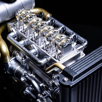 完成後はモーターで駆動し、ピストン、クランク、カムシャフト、さらには吸排気バルブやロッカーアームなど、実物さながらの動きをみせます。