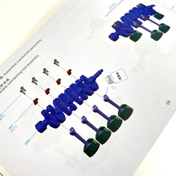 詳しい図解誘導の組み立て説明書を見ながらディーゼルターボエンジンを組立ていきます。