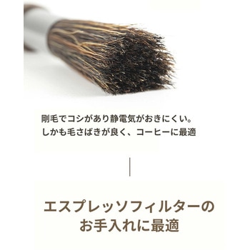 また、コーヒーの豆に含まれる油分や水分を吸収しても毛のコシが無くならず、コーヒーに最適なブラシです。