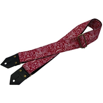 SpiceNote「Printing Fabric」シリーズのペイズリー柄モデル一見定番的なペイズリー柄に見えるが、音符や音楽記号が隠されたオリジナルデザイン粗めの織りと色褪せたレッド/ホワイトの色調がヴィンテージ感を演出裏地にはポリプロピレン織ベルトを使用し、滑りにくく操作性も良好ストラップエンドには本革(ブラック)を採用し、型押しロゴ入り金属パーツはアンティーク調で高級感とステージ映えを両立無段階バックルで長さ調整がスムーズ