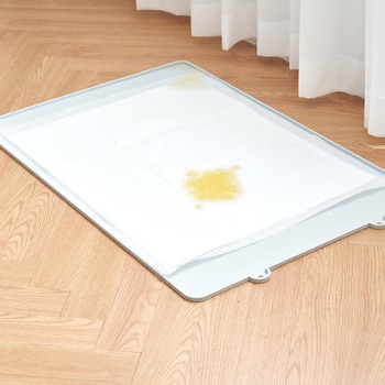 トイレ用だけでなく、食べこぼし用としても活用できるゆったりサイズで、インテリアにも映えるデザインです。