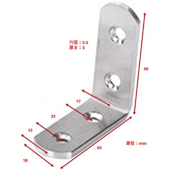 【幅】19(mm)【奥行】50~100(mm)【高さ】50~100(mm)【厚さ】3(mm)【穴径】5.5(mm)【材質】201ステンレス【重量】35.1~73.0(g)【耐荷重】20(Kg)【穴数】4~6【色】黒、銀
