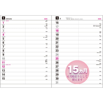 厚みがなくコンパクトな製本形式の糸かかりとじの見開き1ヶ月ダイアリーです