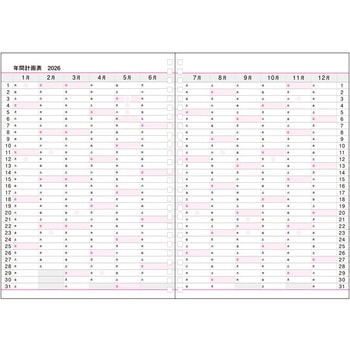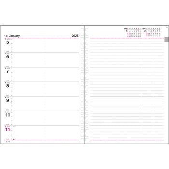 見開き性に優れて左右頁の行が段違いにならないワイヤリングとじ形式の見開き1週間ダイアリーです