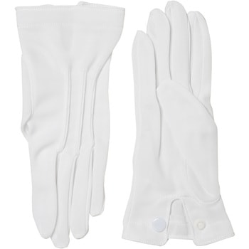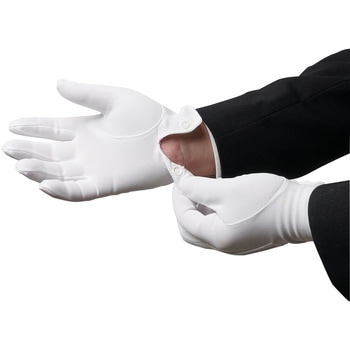 東レ製のナイロン生地を使用した礼装用手袋。毛羽立ちにくいので、繰り返し洗濯して使用できます。手首のホックでしっかりとホールドします。