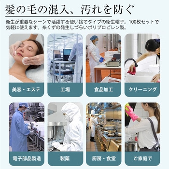 軽量・通気性に優れた不織布製の使い捨てキャップです。棒状に折り畳まれており、コンパクトで保管や持ち運びも簡単。髪の毛やホコリの混入を防ぎ、衛生が求められる作業現場に最適です。二重バンド仕様により脱落やずれを防止し、ゴムの伸縮性にも優れているため圧迫感が少なく、長時間の使用でも快適に装着できます。糸くずが出にくいポリプロピレン素材を採用し、使い捨てタイプで常に衛生的にご利用いただけます。