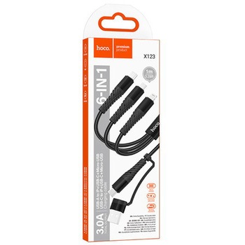 iOS、microUSB、USB-Cの3つ充電ポートとUSB-AまたはUSB-C、2つの入力を組み合わせて、6種類のケーブルを一本で利用できます。