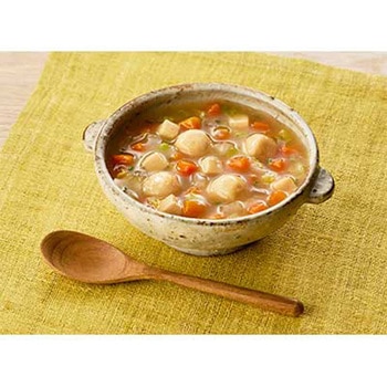 ・介護が必要な方の「食べたい」気持ちに寄り添い、「おいしくて、食べやすい」にこだわりました。まんぷく日和で、ご家族の楽しい食事時間を。・彩りよく様々な食材のおいしさ。・ふんわりやわらかい鱈つみれと4種の野菜、豆腐を、帆立と昆布のだしで煮込みました。たっぷり150g。食物繊維入り。