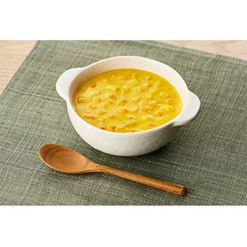 ・介護が必要な方の「食べたい」気持ちに寄り添い、「おいしくて、食べやすい」にこだわりました。まんぷく日和で、ご家族の楽しい食事時間を。・彩りよく様々な食材のおいしさ。・かぼちゃ、にんじん、じゃがいもが具材として入った、かぼちゃの甘味を感じるコンソメ風味のクリーミーなスープです。食物繊維入り。
