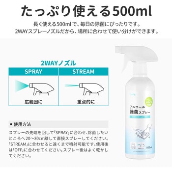 アルコール除菌スプレー 500ml 大容量 2Wayノズル
