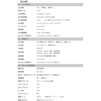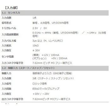 数値表示:瞬時表示 上段6桁 7 セグメントLED 文字高14.2mm/積算表示 下段8桁 7 セグメントLED 文字高10.16mm