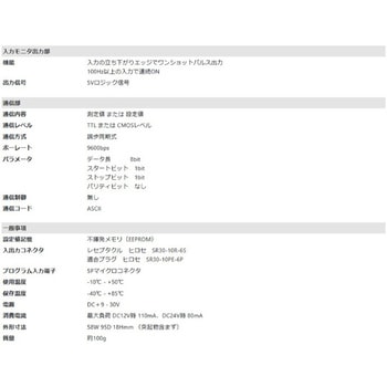 ●アナログ:0-10V●ダイナミックTM予測:8段階(周期保持、連続予測、停止予測6段階)●チャタサプレス・ステップレス:ON/OFF●移動平均:2025/01/16●演算モード:データロック、ピークホールド、バレーホールド、デュアルレンジ、スプレッド(上下限周波数設定)、対数出力●分周比:1 - 999(パルス平均)