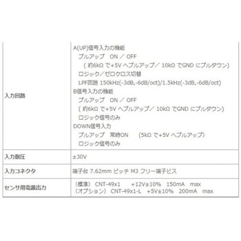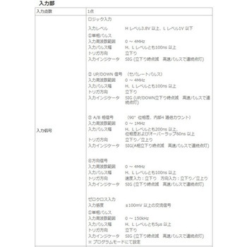 定格コンパレータ出力:DC350V 80mA max (抵抗負荷)AC240V 80mA max (抵抗負荷)出力形態コンパレータ出力部:絶縁型無接点出力 (フォトモスリレー)制御入力:後部端子より入力 (GND 端子と短絡)L レベル幅 2ms 以上で入力設定方式コンパレータ出力部:プログラムモードにて設定、プッシュスイッチ機能スケーリング:6 桁と小数点位置で1パルスあたりの表示値を設定※ プログラムモードにて設定表示器数値表示/6桁:セグメントLED 文字高14.2mm使用温湿度範囲0℃~+40℃/85%RH 以下 (但し、結露無き事)消費電力(VA)8以下保存温度範囲(℃)-20~+70雰囲気使用周囲:腐食性ガス無き事内容量1台