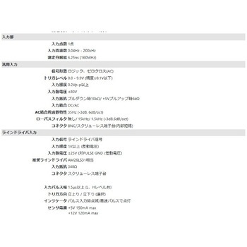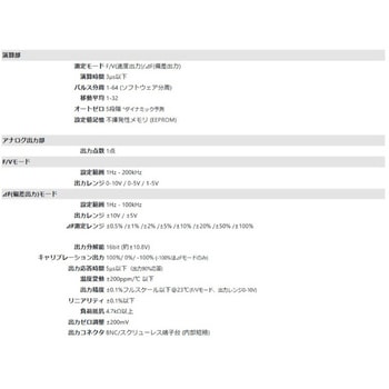 仕様●アイソレーション:センサ電源・信号入力 / アナログ出力 / 電源入力 / 筐体●アナログ:1パルス応答●ゼロ表示:リーディングゼロサプレス電源(V)AC100-240表示更新:0.3s入力方式単相表示桁数6桁(周波数表示桁)表示器16×2文字ドットキャラクタLCD (LEDバックライト照光)表示精度±100ppm/℃ ±1Digit@23℃(周波数表示精度)使用温湿度範囲0℃ - +40℃/85%RH以下(ただし結露無き事)保存温湿度範囲-10℃ - +60℃/85%RH以下(ただし結露無き事)表示単位Hz / rpm雰囲気使用周囲:腐食性ガス無き事内容量1台