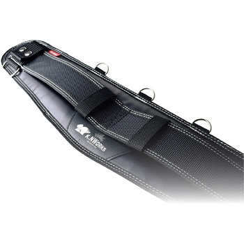 たわみにくいハードタイプのサポートベルト。ゴツいクッション(8個のクッション)が腰をサポートします。サスペンダーが装着出来るD環付。