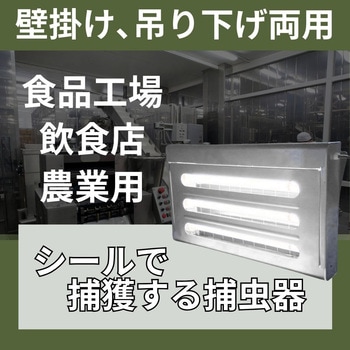 薬剤不要のオールステンレス捕虫器。箱から出して設置するだけ。壁掛け、吊り下げ両用で安全に虫を捕獲します。IP65のオールステンレスで湿度が高い食品工場や飲食店でも安心してお使い頂けます。紫外線ライトで虫を引き寄せ、無臭の粘着シートでしっかりキャッチ。ペットやお子様のいる環境でも安心して使える安全設計です。