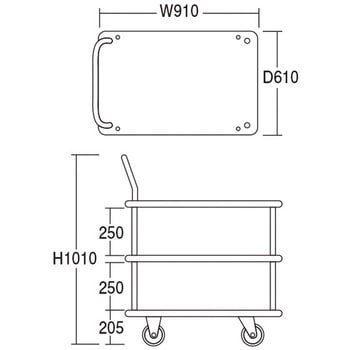 二段式ワゴン台車・下段金網付き・フットブレーキなし