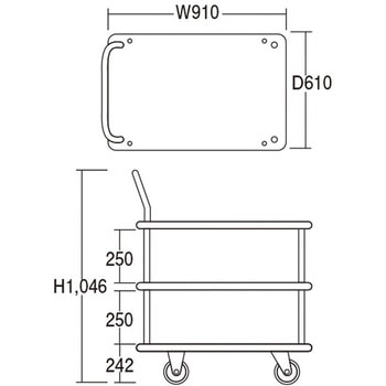 二段式ワゴン台車・下段金網付き・フットブレーキなし