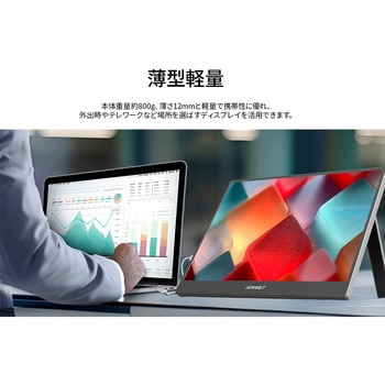 15.6インチのIPSパネルを搭載し、使いやすいフルHD(1920x1080)解像度に対応したモバイルモニターです。上下左右178度に対応した高画質IPSパネルを搭載。10点マルチタッチに対応したタッチパネルを搭載し、画面のスクロールや写真のピンチズームなど、直感的に画面の操作を行うことが可能です。※タッチ操作はWindows環境でのみご利用可能です。約800gの軽量設計と最薄部12mmの薄型本体。モニター背面にキックスタンドを搭載しているので自立して使用することができ、どこでもデュアルディプレイ環境の構築が可能です。また、携帯時に便利なフェルトケースを同梱。製品本体をホコリや傷から守り、持ち運びに最適です。入力端子としてハイブリッド対応(モニターへの電源と映像を1本で送信)のUSB-Cを2つとminiHDMIを1つ装備します。※miniHDMI使用時にはUSB-C端子から電源供給が必要になります。75x75mmのVESA規格に対応、モニターアームなどにも使用が可能です。モニター画面のフリッカー(ちらつき)、およびブルーライトを軽減、目の負担を軽くします。1Wx2のスピーカーを内蔵していますので、動画やゲームなどをお楽しみいただけます。本製品には、2年間のメーカー保証が付きます。