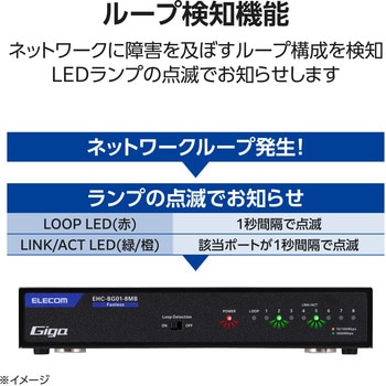 ループ検知機能を搭載しています。LEDランプの点滅によりネットワークループ発生をお知らせし、ネットワーク障害の解消を促します。