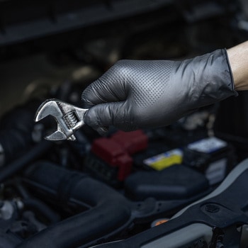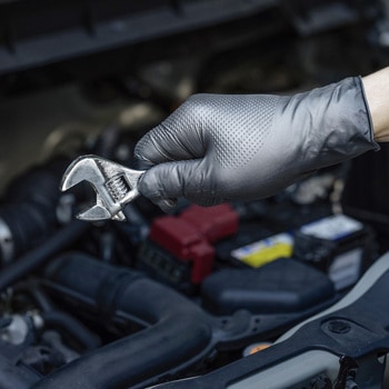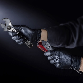 ダイヤモンド型エンボス加工を施しており、超強力グリップを実現。油脂や薬品に強いニトリル製で幅広い用途に使用可能です。通常のニトリル手袋にくらべて、かなり厚手のあるタイプでハードな作業に最適。