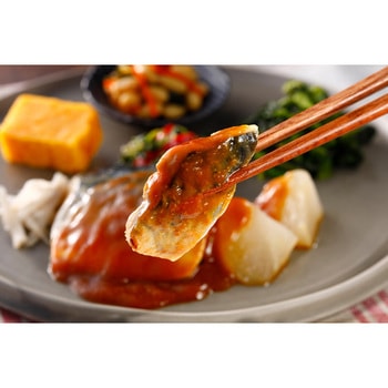 きくばりごぜんシリーズは1食あたり カロリー300kcal以下、塩分2.0g以下、野菜使用量100g以上の冷凍総菜セットです。野菜使用量…芋類きのこ類海藻類豆類を含む。生鮮換算。脂ののったさばとみそダレでご飯がすすむ人気のメニュー和食の定番メニューのさば味噌はコクのある濃いめの味噌の味でごはんにあう味付けにしています。彩りよくバランスのとれた和食のセットです。<主菜>さば味噌<副菜>ほうれん草の和え物厚焼き玉子大豆の煮物菜の花のからし和え。