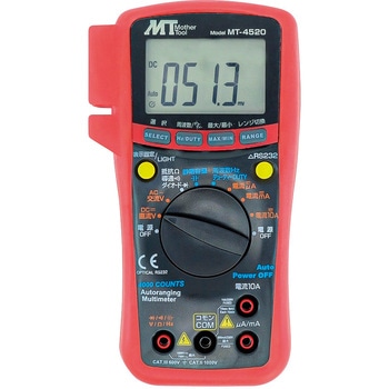 仕様測定モードと測定範囲:(DCV)400m/4/40/400/1,000V、(DCA)400μ/4,000μ/40m/400m/4/10A、(ACV)400m/4/40/400/750V、(ACA)400μ/4,000μ/40m/400m/4/10A、(抵抗Ω)400/4k/40k/400k/4M/40MΩ、(静電容量F)40nF/400nF/4μF/40μF/400μF/4,000μF、(周波数Hz)9.999Hz~10MHz、(デューティー比)0.1~99.9%寸法(mm)98×39×180表示4000カウント機能電流・電圧レンジはMAX/MIN表示、USB通信機能搭載電源(個)006P型積層電池1(モニタ用付属)内容量1個