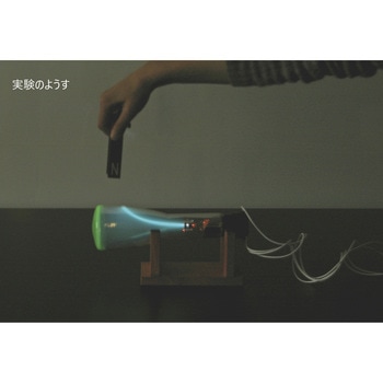 上下方向から磁石を近づけると、直進する陰極線が曲げられることを観察できます。