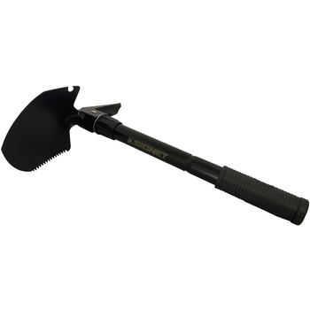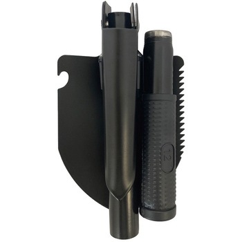 分割してコンパクトに収納できるスチールスコップです。ストレートとベントの2通りで使えます。マルチユースで、コンパス、ピックになります。ハンドルは握りやすいPPグリップです。ベルトループのあるポーチ付きです。