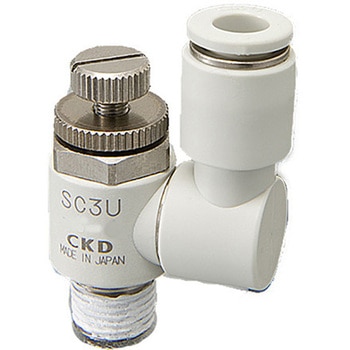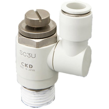 配管方向を360°自由に設定できるユニバーサルタイプのスピードコントローラです。樹脂部には難燃性PBT(UL94規格V-0相当)を標準採用しています。配管ねじ部にフッ素系樹脂のシール剤をコーティングしています。銅イオン防止処理を行っています。