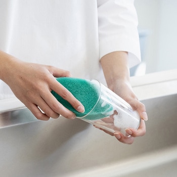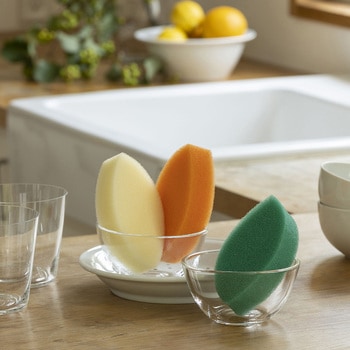 「亀の子スポンジDo」は、「シンプルさ」と「清潔さ」にこだわり、さらには「持ちやすい形」にも目を向けました。手に馴染み握りやすい「木の葉型」のしっかり厚みのあるタイプ。両端が細いので、細かな汚れも落としやすいのが特長です。 ゴシゴシ洗いたいお鍋や汚れが強いものにおすすめです。「銀イオン系抗菌剤」をスポンジ全体へ練り込むことで、高い抗菌効果とより柔らかい握り心地を実現しました。