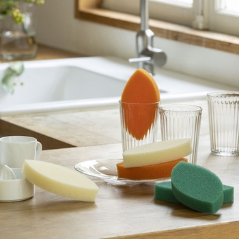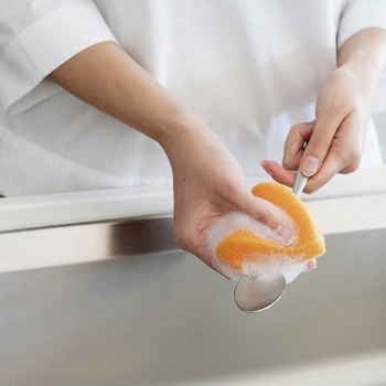 「亀の子スポンジDo」は、「シンプルさ」と「清潔さ」にこだわり、さらには「持ちやすい形」にも目を向けました。厚さ25mmの木の葉型スポンジが2枚入ったお得なセット。 薄めのスポンジは底の深いグラスやマグカップなどに最適。両端が細くなっているので細かいところまでフィットします。「銀イオン系抗菌剤」をスポンジ全体へ練り込むことで、高い抗菌効果とより柔らかい握り心地を実現しました。