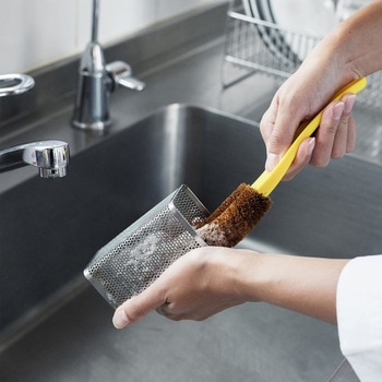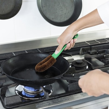 キッチンやお風呂周り、靴洗いなどに使える柄付きたわしです。高品質なパーム繊維をしっかりと巻き込んだたわし部分が、頑固な汚れも掻き落とします。 鉄のフライパンやザル、五徳の頑固な汚れ落としにもお使いいただけます。また、キッチン用品のお手入れ以外にも排水溝やお風呂等のタイル磨き、大人の靴洗いと幅広く活躍するたわしです。