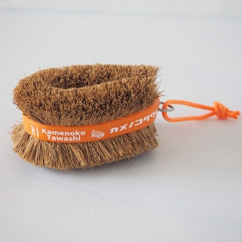 亀の子束子1号型のパーム(ココナッツ繊維)たわしをキッチンでもアウトドアでも使い易い仕様にしました。