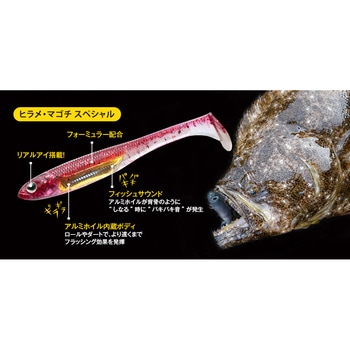 【フラッシングとサウンドがヒラメ・マゴチに効く!ヒラメ・マゴチスペシャル!】リアルベイト革命!フラッシュJシリーズに超リアルなシャッドテールソフトベイトが誕生!シャッドテールのパワーがボディに伝わりロールすることで、アルミホイル内蔵ボディのフラッシングが広大なサーフエリアのフラットフィッシュに猛アピール!