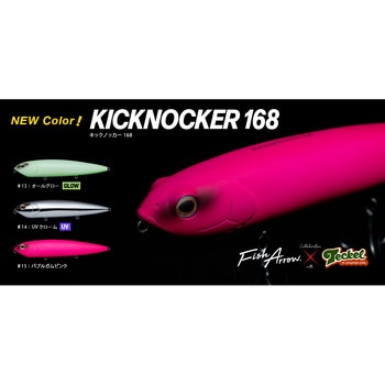 【驚異の飛距離と大きなワンノックサウンド!遊漁船の声で生まれたビッグペンシルベイト!】フィッシュアローxケッテルコラボのキックノッカー168は、もっともドッグウォーターさせやすいビッグペンシルベイトです。9mmタングステンボールによる驚異の飛距離と大きなワンノックサウンドで広大なフィールドを攻略できます。またキックノッカーの代名詞でもあるタングステンボールがボディにヒットするカコーン・カコーンと鳴り響くワンノックサウンドは、魚へのアピールと共に初心者の方でもリズム良くアクションをさせやすいといったメリットがあります。