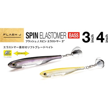 【エラストマー素材のソフトブレードベイト。ジグヘッドでのただ巻き・フォール・ミドスト・バマスト・スカートチューンのピクピク・瀕死リグ・リアクションダウンショットなどあらゆるリグで使用可能】エラストマー素材のリアルベイト「FLASH-J」にブレードが付いた「フラッシュJスピンエラストマー」。タフ素材エラストマーにボールベアリングスイベル+ブレードが付いた画期的なソフトベイトが誕生。バスモデルの3インチには、軽いウエイト(1.8g)でもしっかりとブレードが回転しながらフォールする様にコロラドブレード#0を採用。4インチには、フォールやスローリトリーブ、またバマストでの使用を考えて、こだわりのインディアナブレード#1を採用。