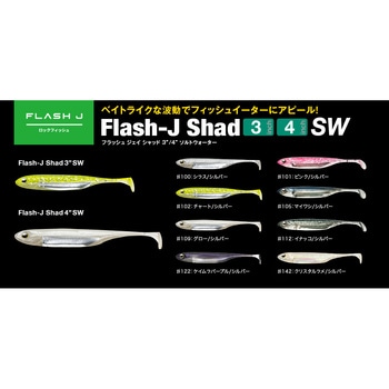 【リトリーブやフォール時に動くシャッドテールを搭載した「フラッシュJシャッド」が登場!】内蔵のアルミがフラッシングとサウンドを生み出すリアルベイトの決定版フラッシュJに、リトリーブやフォール時に動くシャッドテールを搭載した「フラッシュJシャッド」が登場!ベイトライクな波動をだしフィッシュイーターにアピールします。