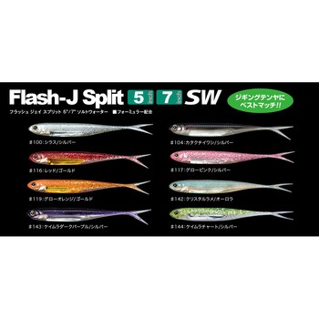 【もはやエサ並みのリアルさ!】フラッシュJスプリットは、タチウオ・青物・ヒラメといったフィッシュイーターをターゲットにしたソフトベイトです。フラッシュJシリーズならではのリアルなシルエットにリアルな輝きは、ルアーマンからエサ釣りの方にも使って頂けるスーパーリアルなソフトベイトです!
