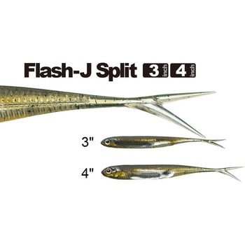 【ダウンショットスペシャル!ベイトフィッシュライクなスプリットテール「フラッシュJスプリット」】スプリットテールの「フラッシュJスプリット」は喰わせに重点をおいたダウンショットスペシャルになります。フラッシュJよりも高さ・幅をスリム化させたうえボディマテリアル(素材)を柔らかいものへと変更しています。またボディ自体が柔らかくなったことで「ジャーキーJ」のような「ライブベイトリグ」(ヨコヨコ)も出来るようになりました。