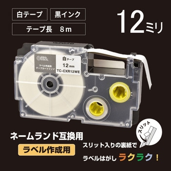 テープカートリッジ 12mm ネームランド互換 白地/黒文字 8m