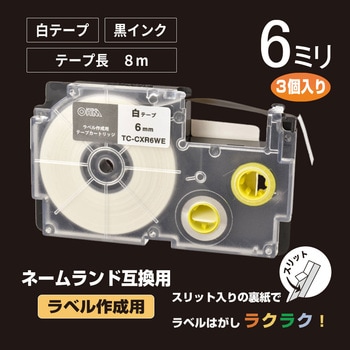 テープカートリッジ 6mm ネームランド互換 白地/黒文字 8m 3個入
