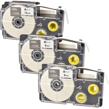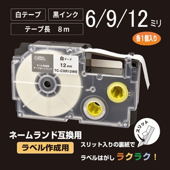 テープカートリッジ ネームランド互換 白地/黒文字 6・9・12mm 各1個入