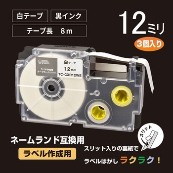 テープカートリッジ 12mm ネームランド互換 白地/黒文字 8m 3個入