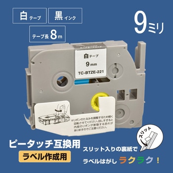 テープカートリッジ 9mm ピータッチ互換 白地/黒文字 8m